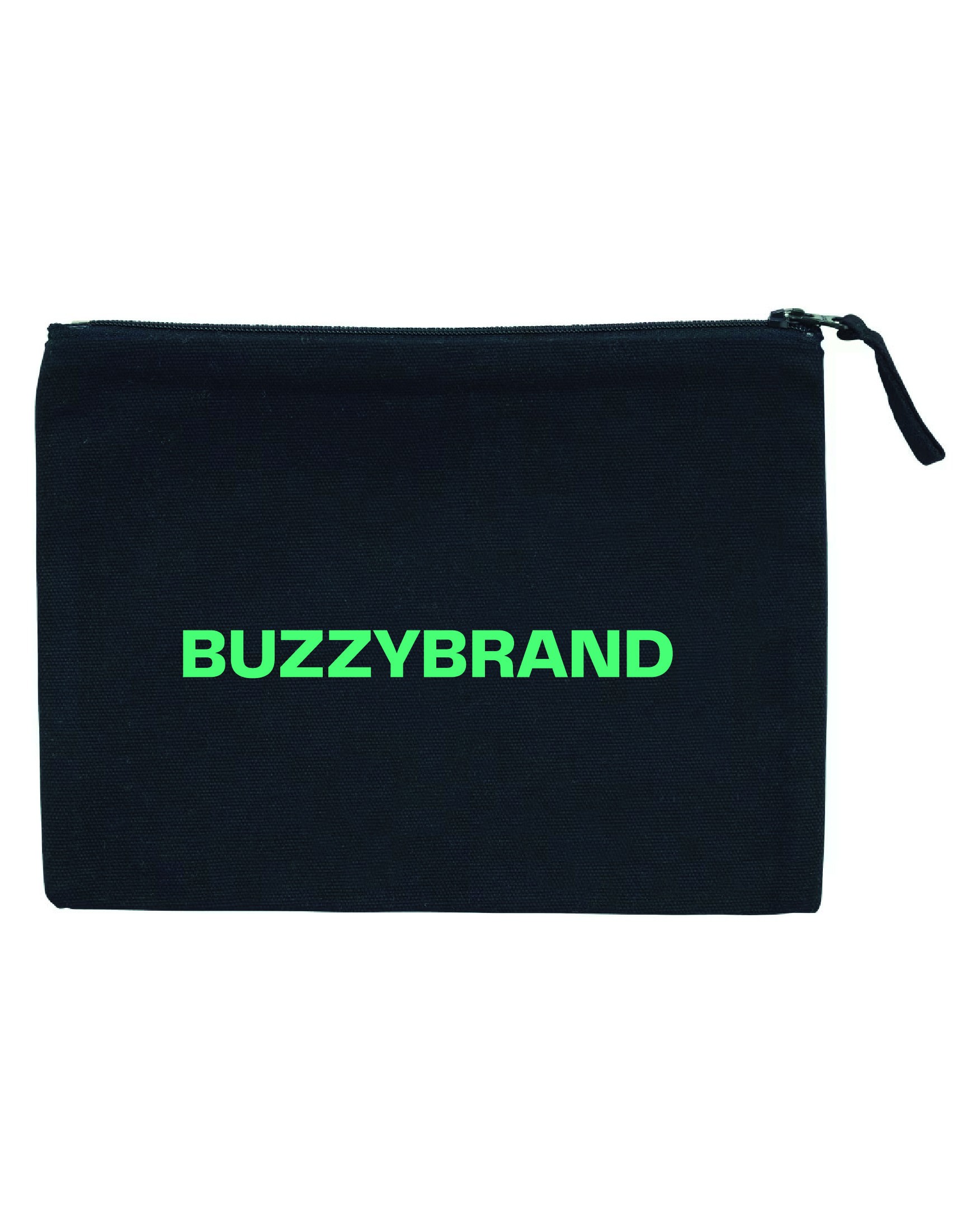 Cuenta con cierre superior de cremallera que garantiza seguridad y facilidad de uso. Su formato plano lo hace ligero y fácil de transportar, perfecto para mochilas, bolsos o maletas. La personalización Buzzy Brand en el frontal refuerza la identidad de marca y aporta un acabado moderno y profesional.
