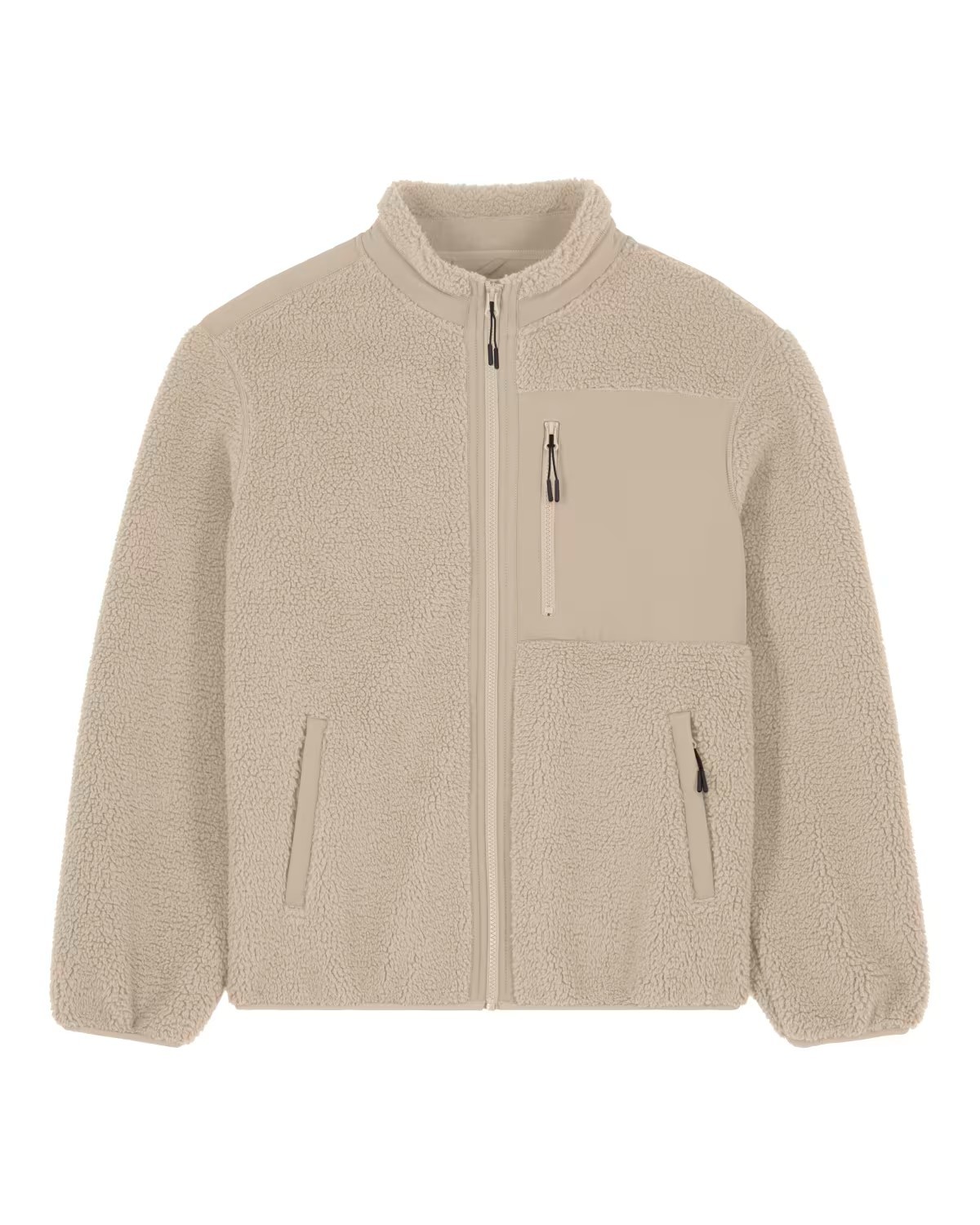 Chaqueta polar tipo borrego con cierre de cremallera, suave y cálida, ideal para el día a día. Diseño moderno en color beige con bolsillo frontal con cremallera y acabados resistentes para mayor comodidad y durabilidad.